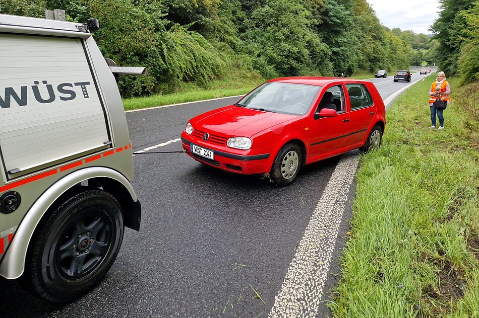 - Ein Kraftfahrzeug jeglicher Art und Größe aus einem Graben bergen
